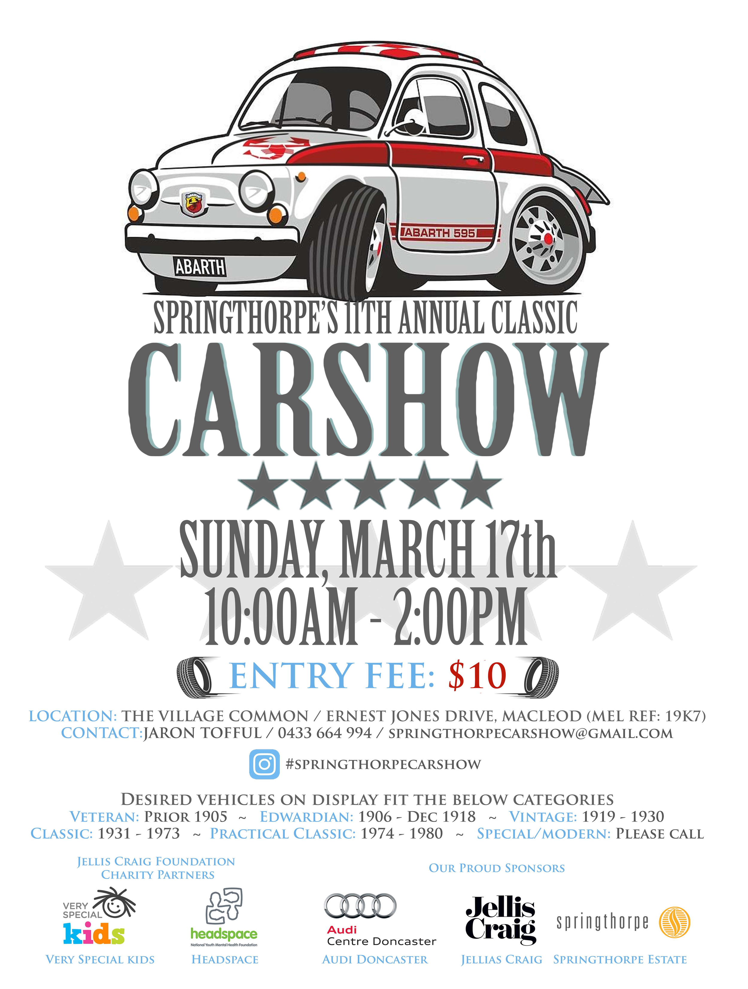 Back to All Events Springthorpe Car Show 2024 Sunday 17 March 2024 10:00 am 2:00 pm Google Calendar ICS Download Flyer